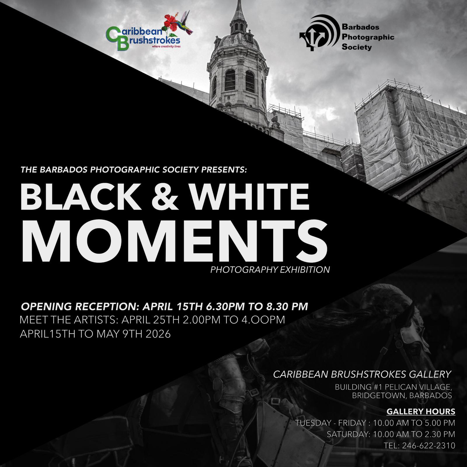 The Barbados Photographic Society presents its upcoming exhibition, Black and White Moments, at the Caribbean Brushstrokes Gallery.